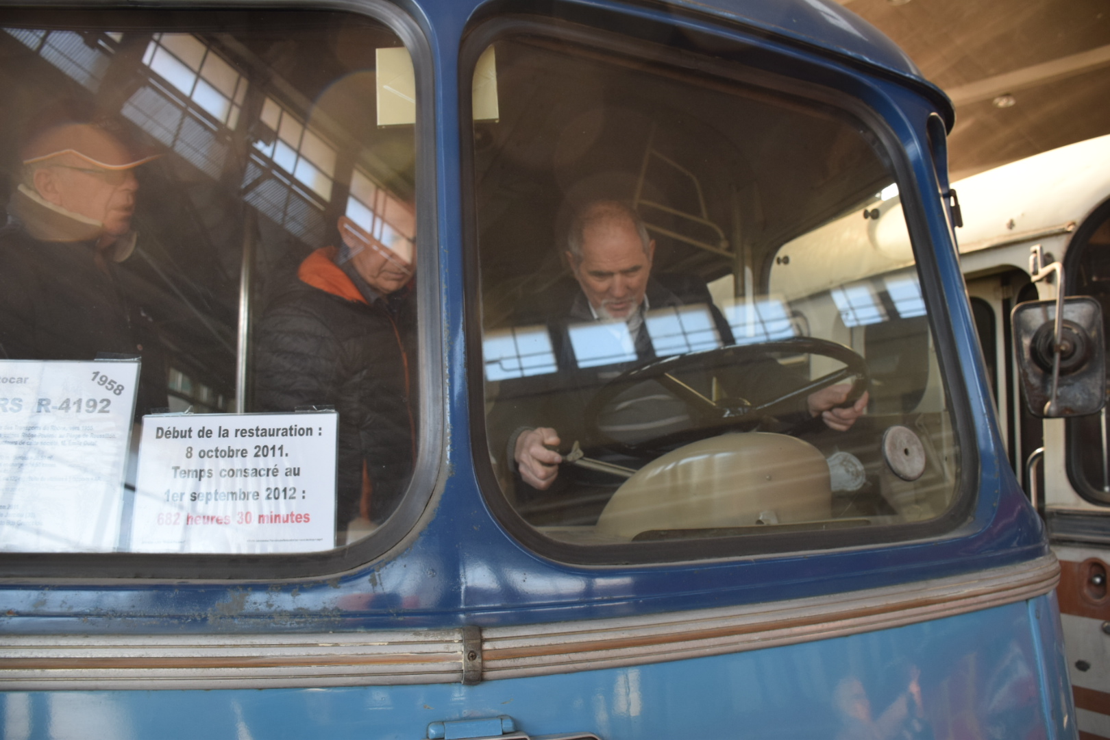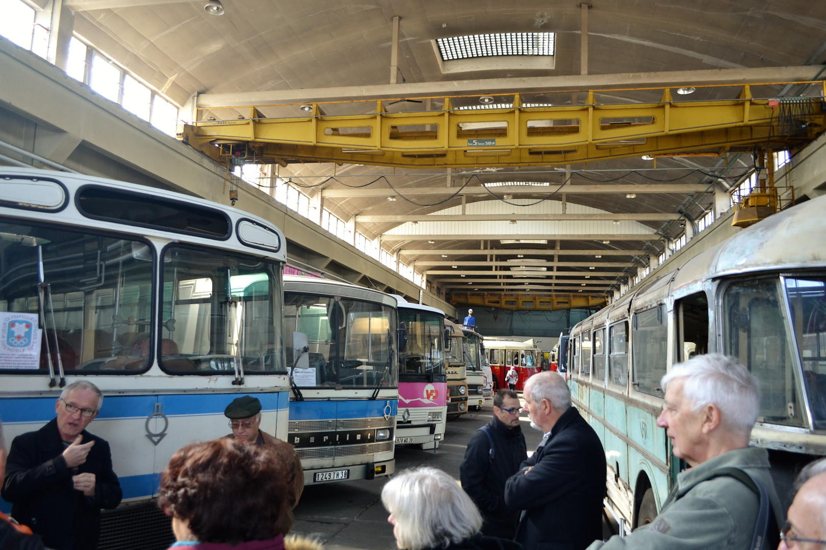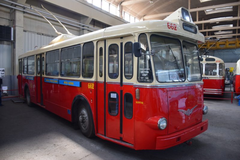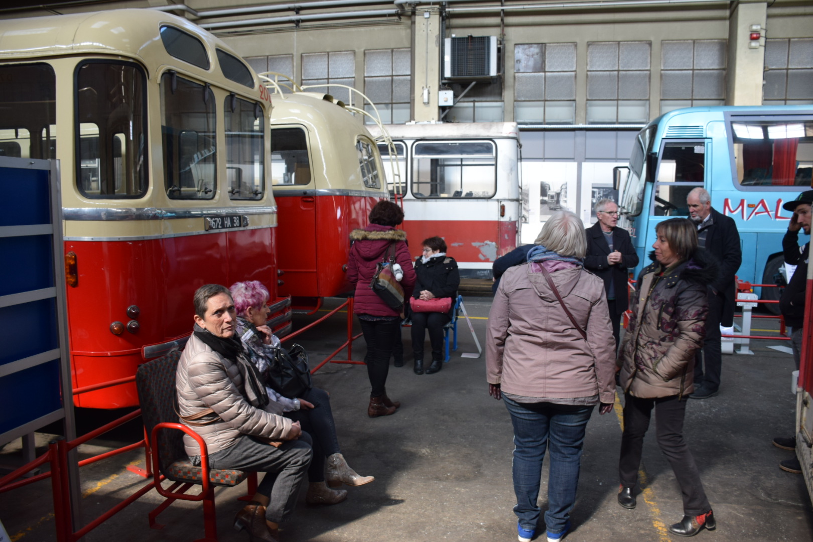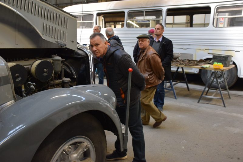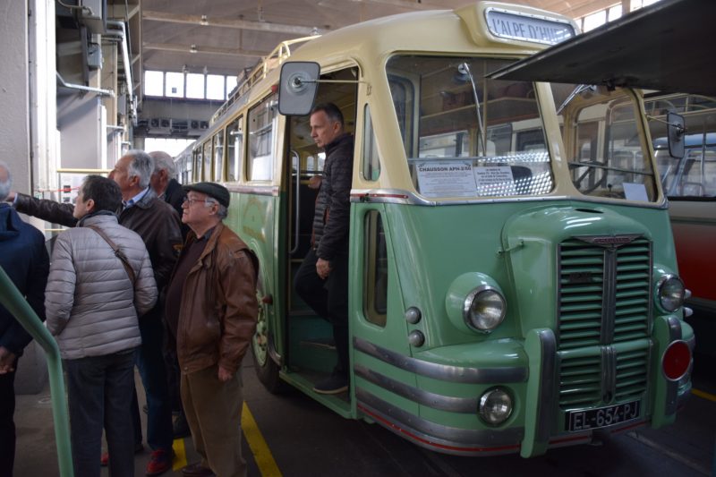 Notre guide est intarissable, véritable mémoire vivante des transports en commun de la région Grenobloise et au delà, il peut vous citer de tête la date de première mise en service de tel modèle, les dimensions exactes de celui dédié à la montée (raide et étroite) au fort Rabot ou le nombre d’heures consacrées à la restauration de cet autre. Les deux heures de visite ont été très remplies et ont paru un peu longues à certains compte-tenu de la température ambiante (3000 m2 au sol et plus de 10m sous plafond, ça ne se chauffe pas aisément).