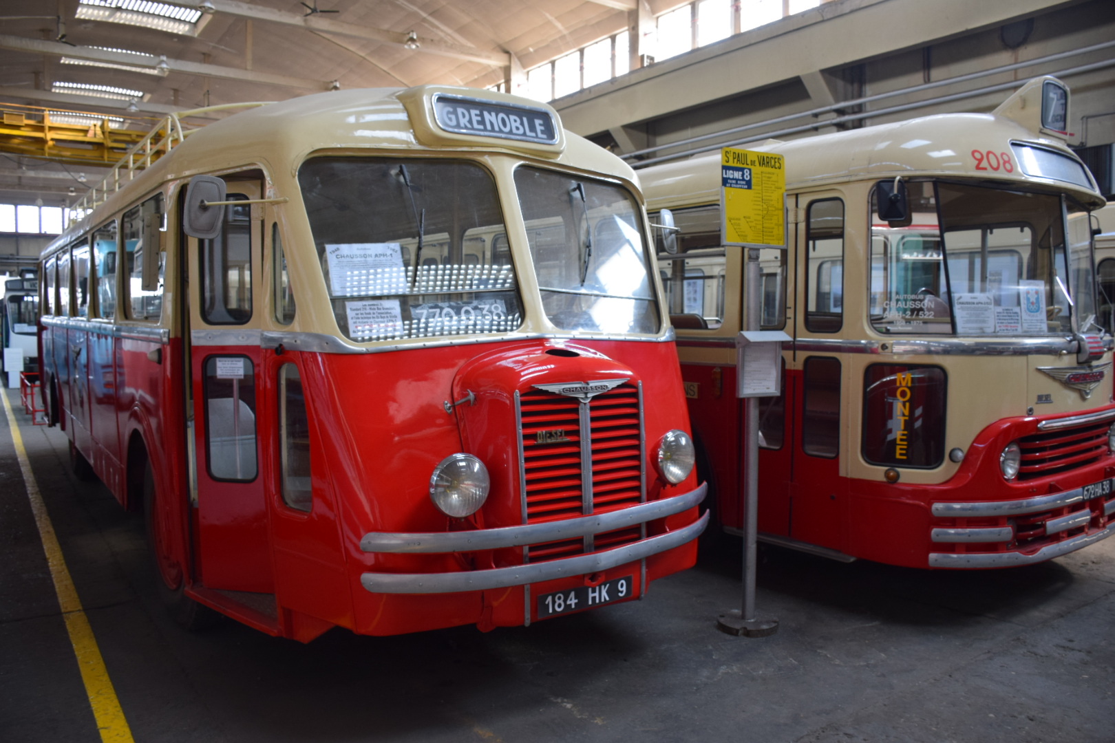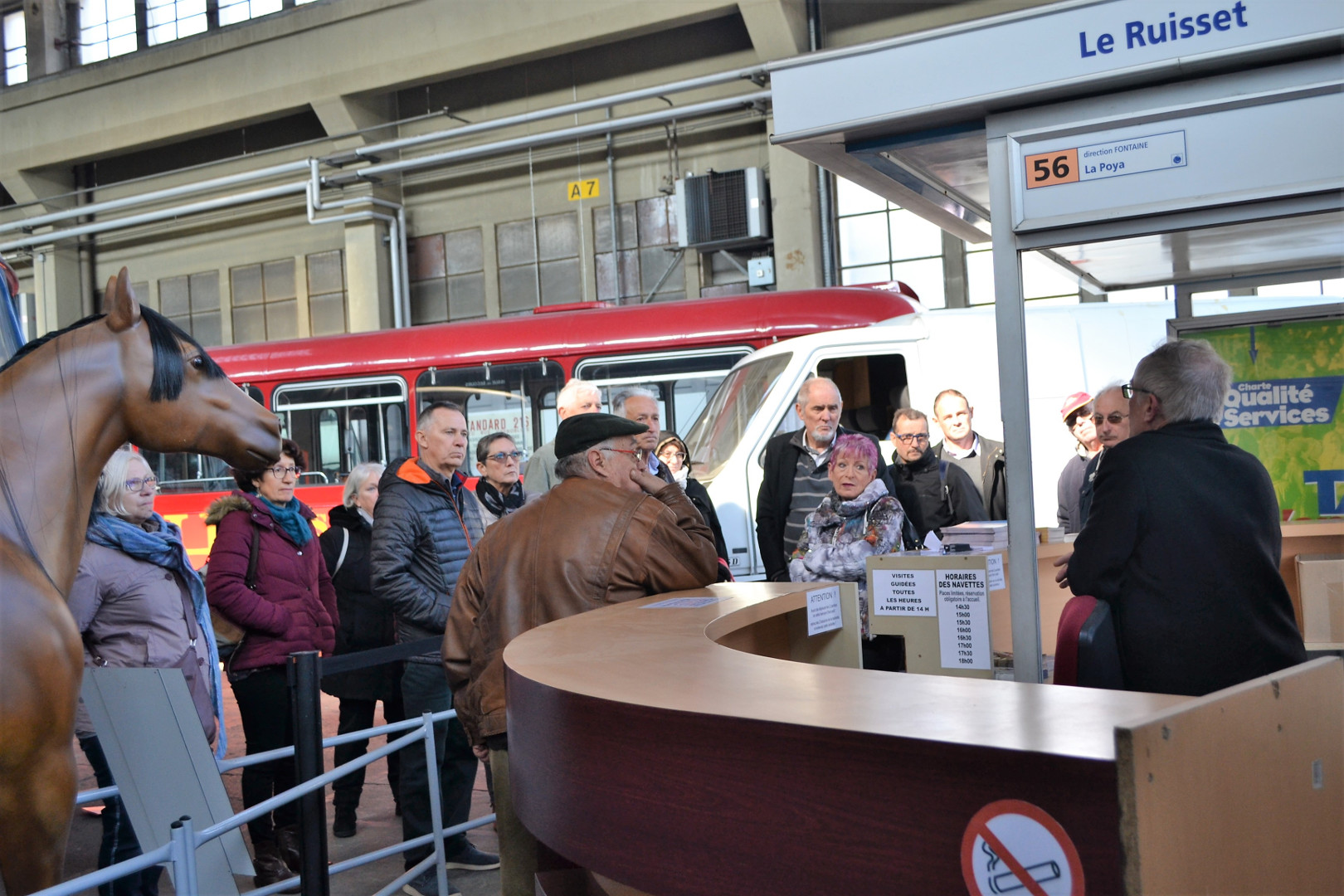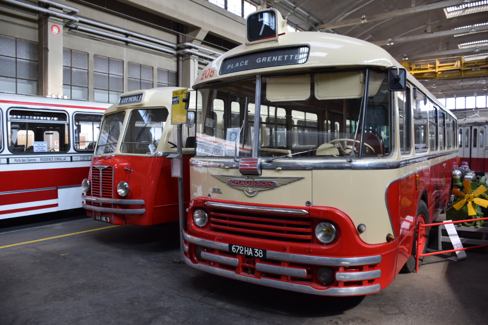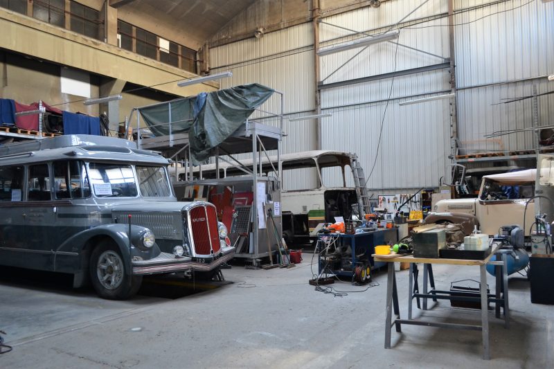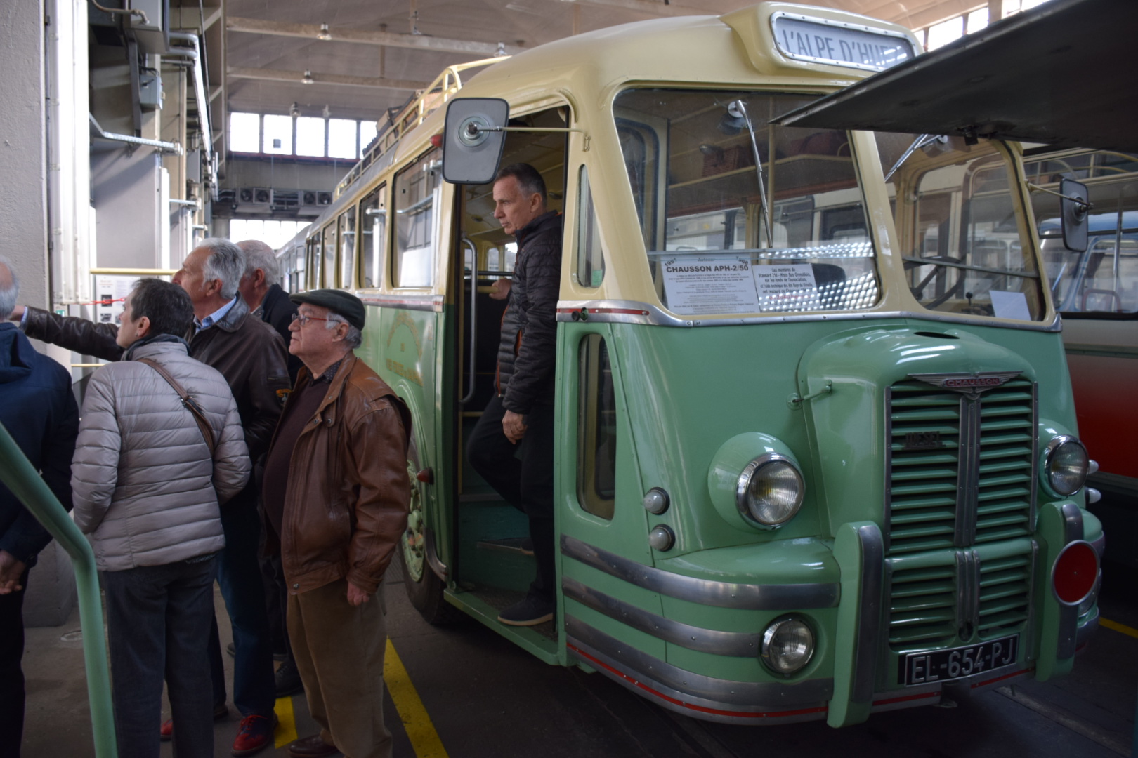 Notre guide est intarissable, véritable mémoire vivante des transports en commun de la région Grenobloise et au delà, il peut vous citer de tête la date de première mise en service de tel modèle, les dimensions exactes de celui dédié à la montée (raide et étroite) au fort Rabot ou le nombre d’heures consacrées à la restauration de cet autre. Les deux heures de visite ont été très remplies et ont paru un peu longues à certains compte-tenu de la température ambiante (3000 m2 au sol et plus de 10m sous plafond, ça ne se chauffe pas aisément).