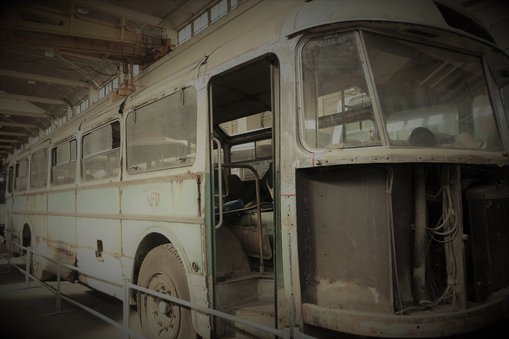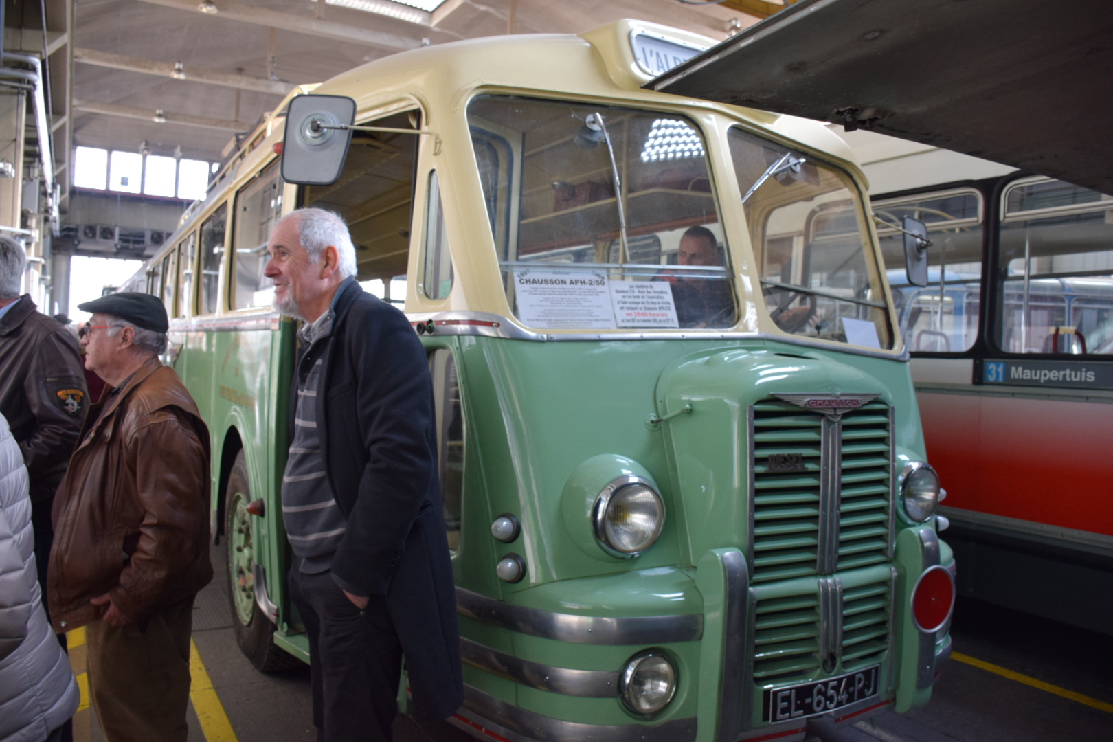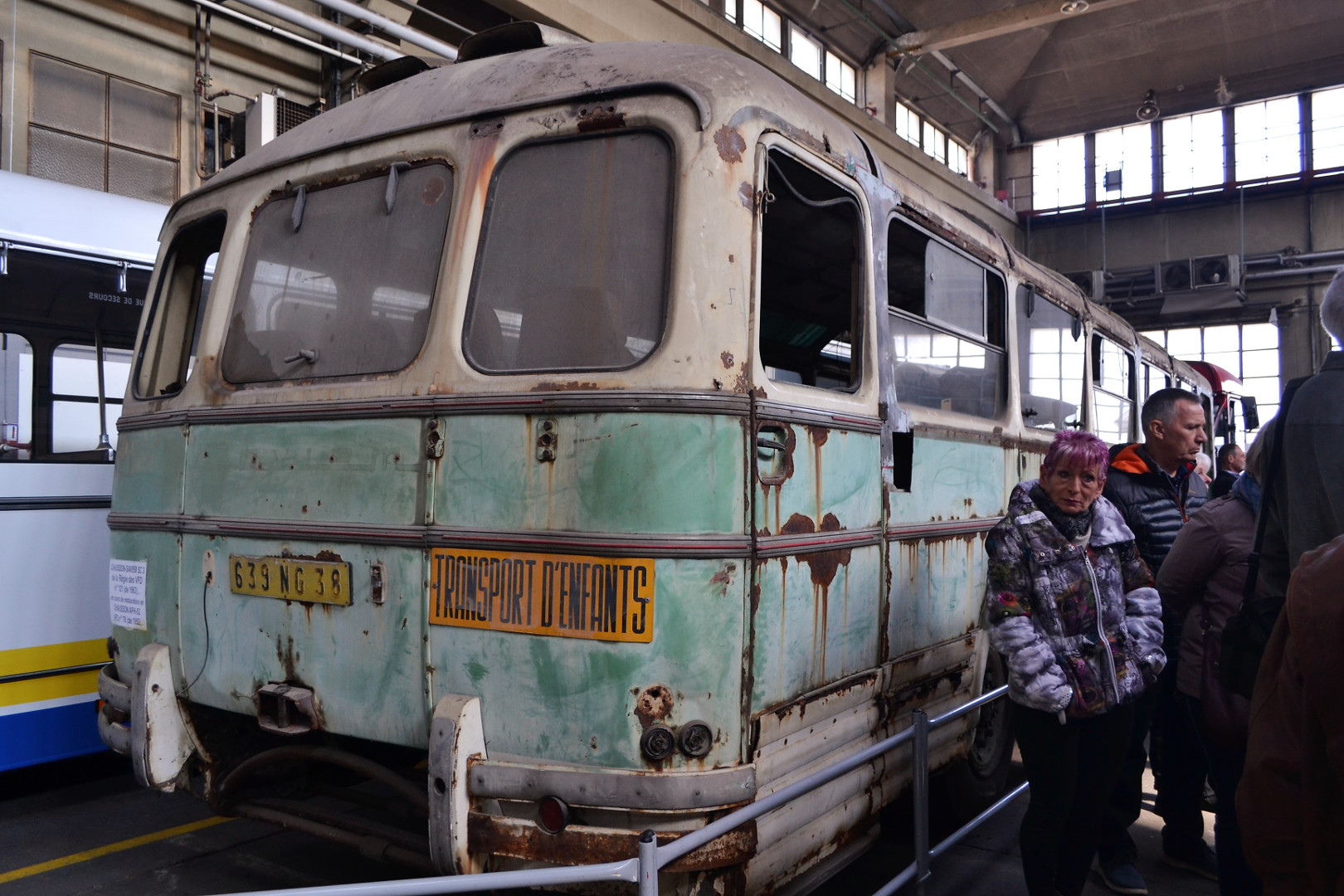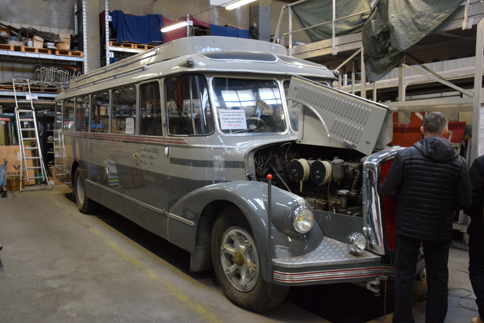 Notre guide est intarissable, véritable mémoire vivante des transports en commun de la région Grenobloise et au delà, il peut vous citer de tête la date de première mise en service de tel modèle, les dimensions exactes de celui dédié à la montée (raide et étroite) au fort Rabot ou le nombre d’heures consacrées à la restauration de cet autre. Les deux heures de visite ont été très remplies et ont paru un peu longues à certains compte-tenu de la température ambiante (3000 m2 au sol et plus de 10m sous plafond, ça ne se chauffe pas aisément).