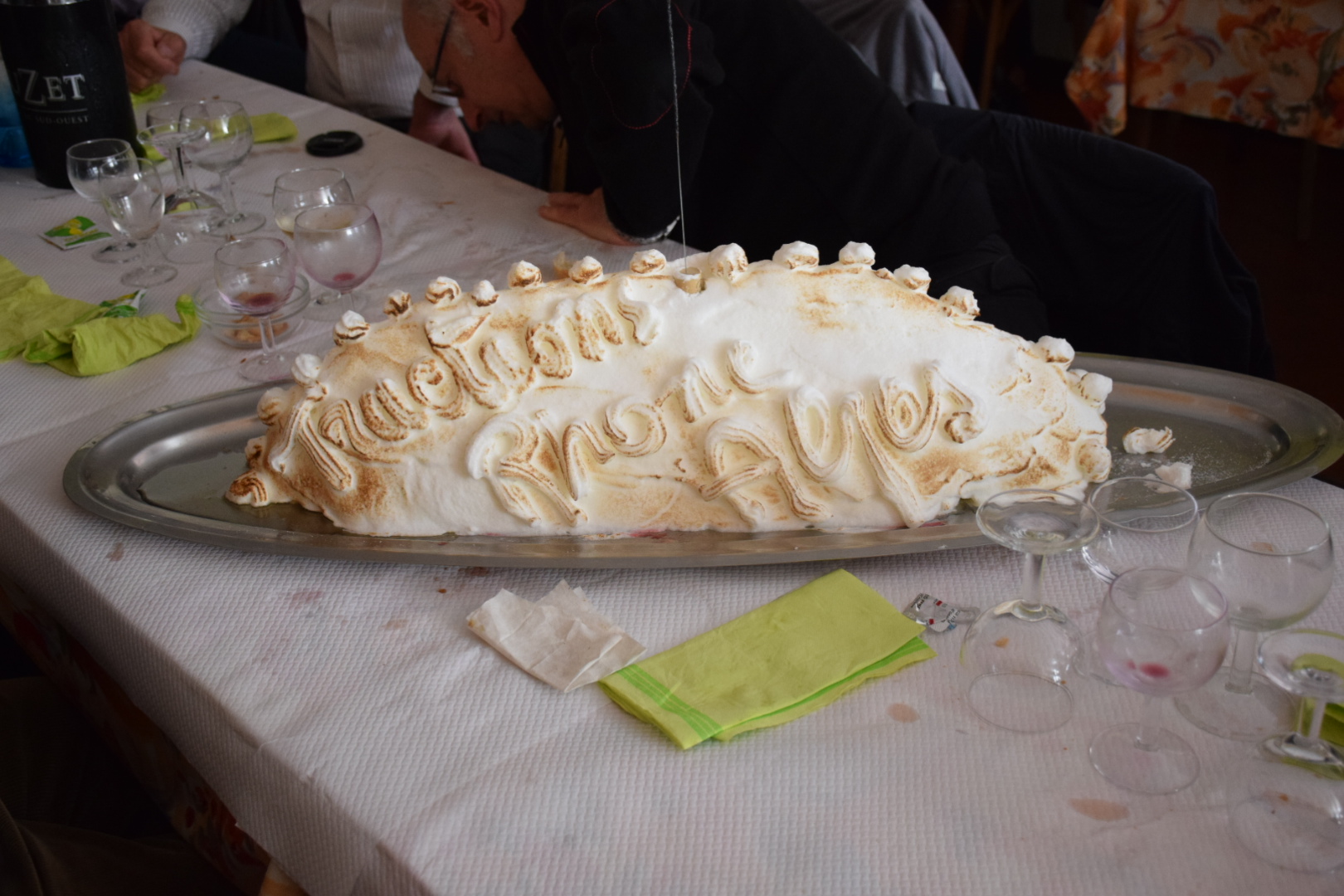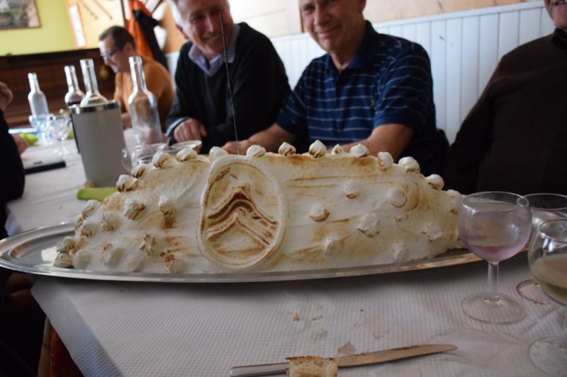 Midi étant largement passé, nous avons pris rapidement congé de notre hôte pour nous diriger après quelques kilomètres vers le restaurant. Le repas, apprécié de tous, était couronné par une magnifique omelette norvégienne siglée Traction Rhône-Alpes. Après avoir réparé le mauvais contact sur le démarreur de Christian et injecté un peu de start pilot (publicité gratuite) dans le carburateur de Raymond, chacun est reparti de son côté.
